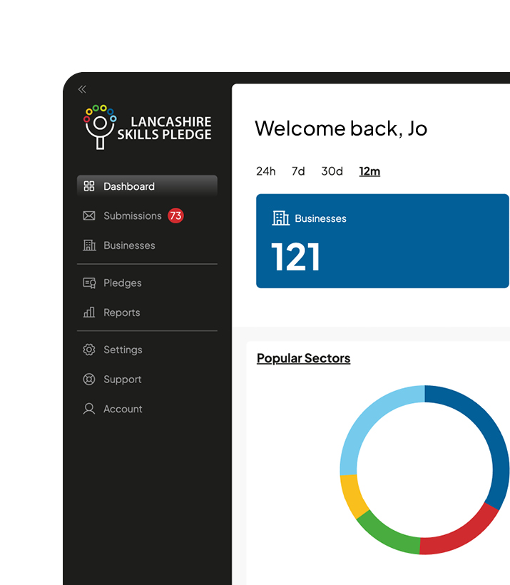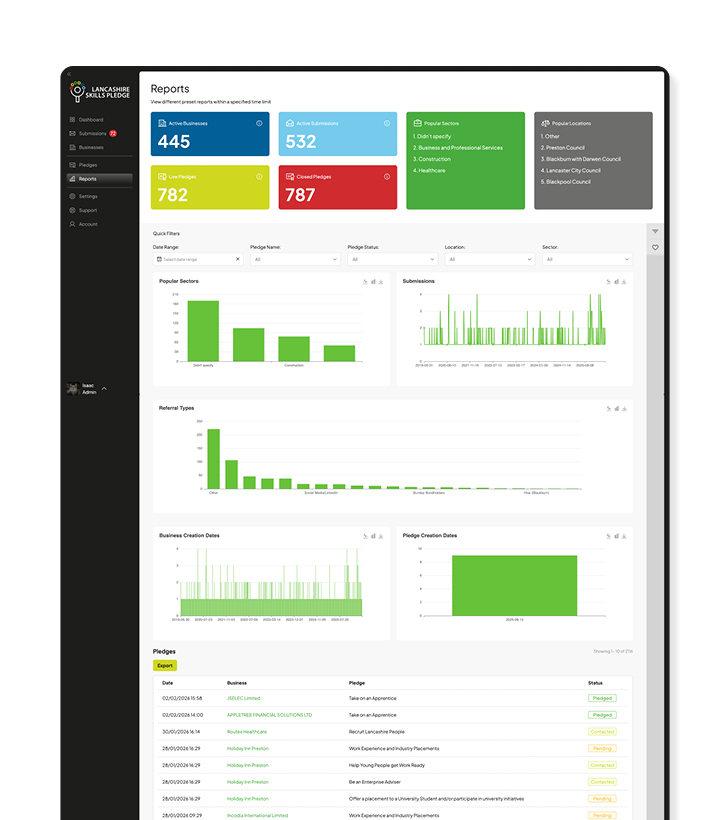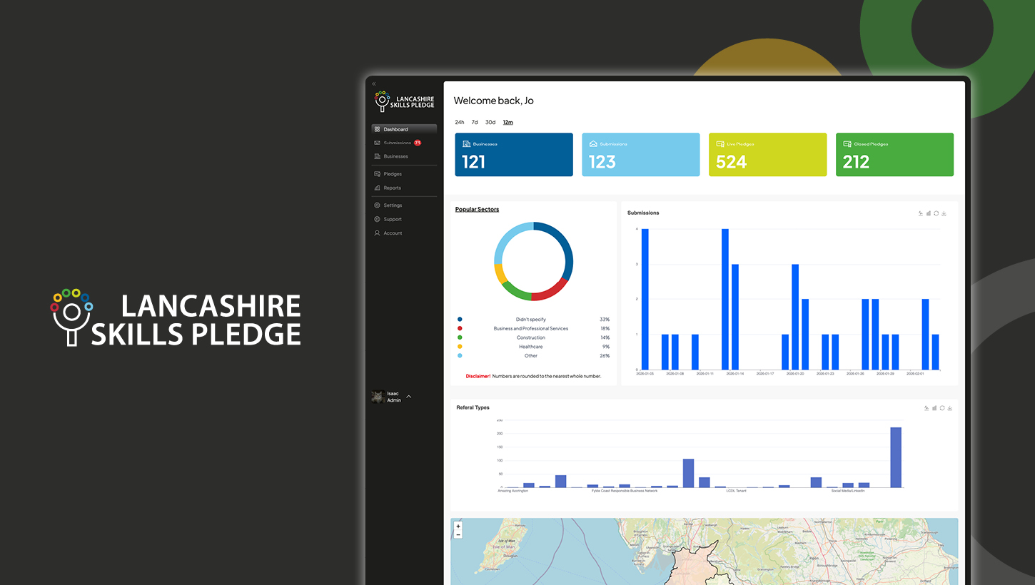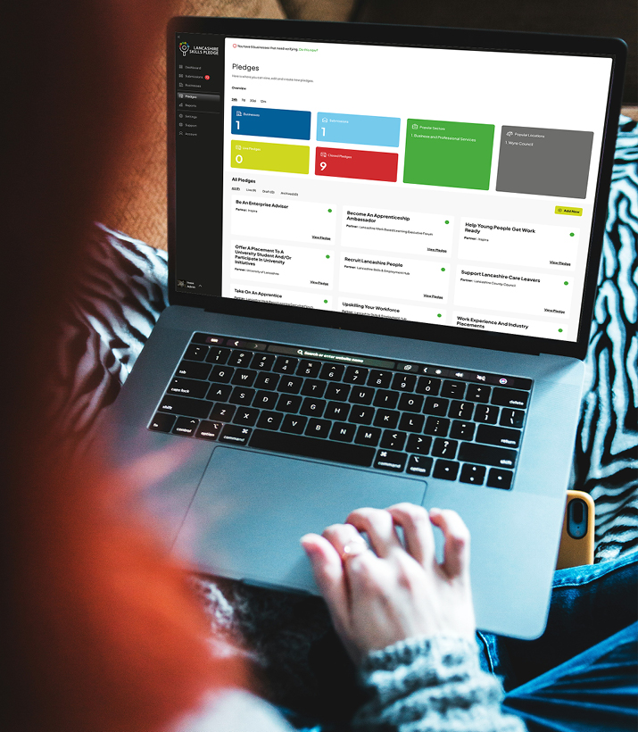 The system now provides the Skills Hub with a clear overview of partner activity and programme engagement, helping the team understand how businesses across Lancashire are contributing to the pledge initiative.