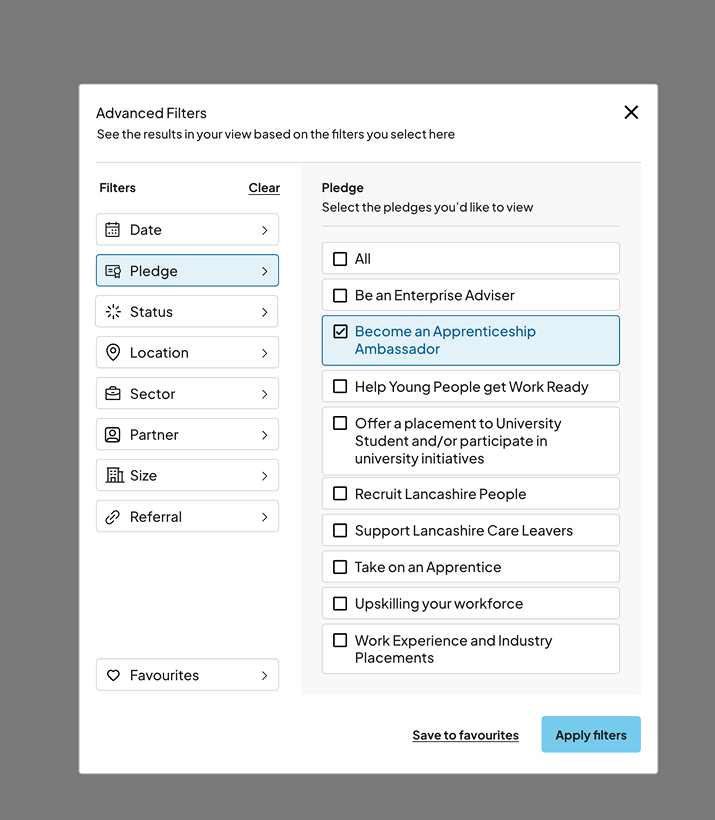 The result is a scalable digital platform that enables the Skills Hub to monitor engagement, track pledge progress, and generate insights that support skills development across Lancashire.